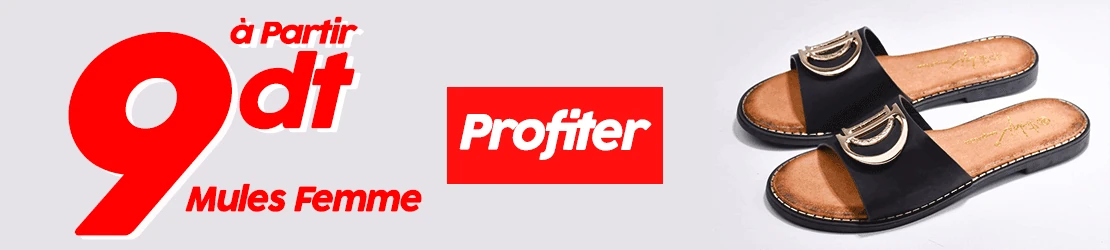 Mules Plates Femme Prix de base 69,00 TND -24,00 TND Prix 45,00 TND Promo ! -24,00 TND Neuf Aperçu rapide Noir