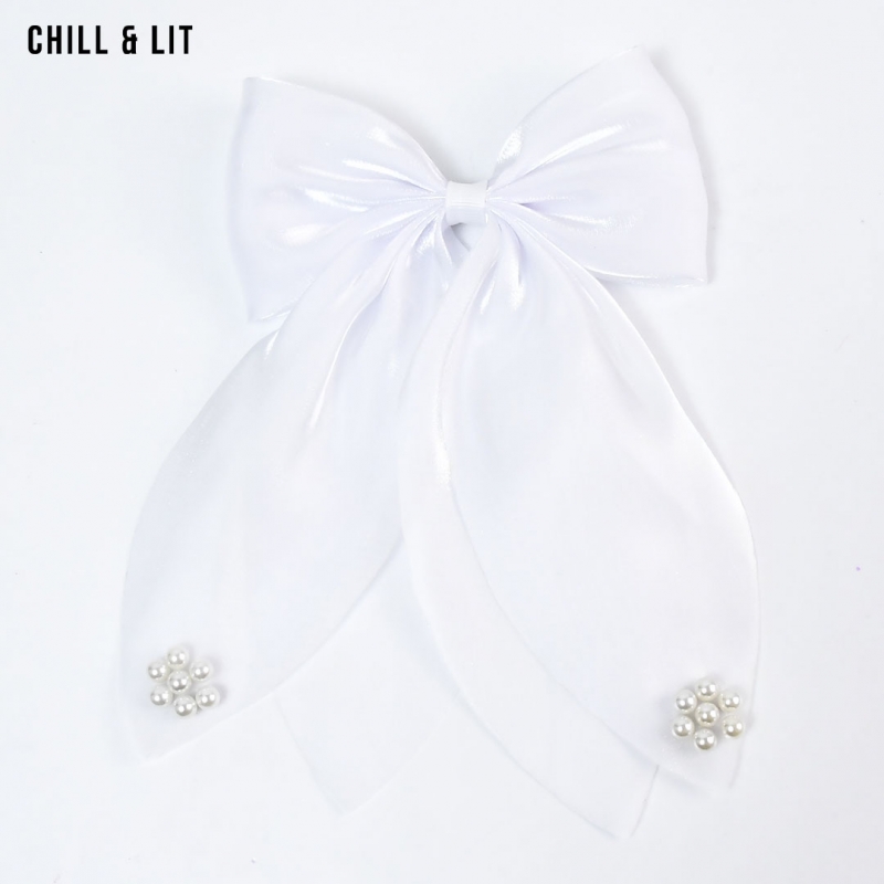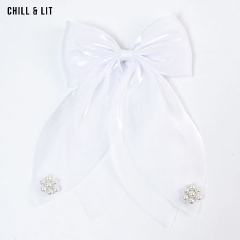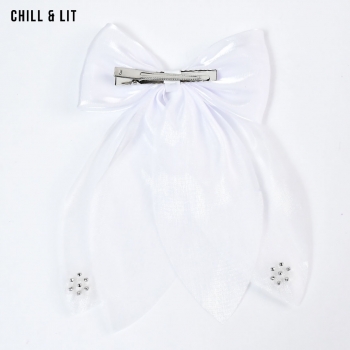 Barrette à cheveux en forme de papillon, en voile délicat et ornée de perles, apporte une touche d'élégance subtile et raffinée, parfaite pour sublimer vos coiffures avec une note de brillance.