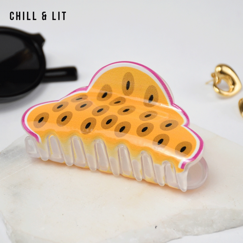 Pince à Cheveux Passion fruit à la fois pratique et tendance, elle allie résistance et élégance pour maintenir vos coiffures avec style tout au long de la journée.