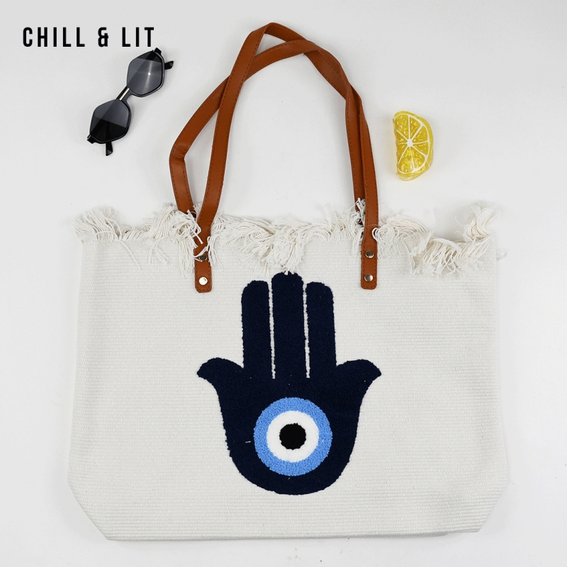Sac cabas en tissu tressé séduit par son design bohème et ses motifs géométriques élégants. Les bords frangés lui apportent une touche de fantaisie, idéale pour un style décontracté et tendance.