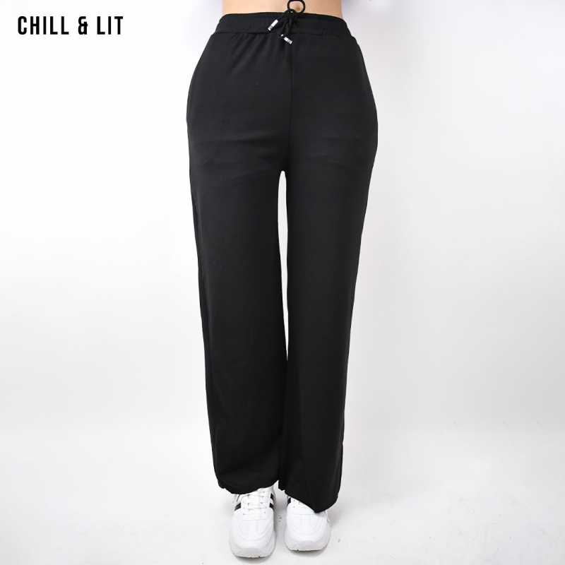 Pantalon Jogging Taille haute 100% Coton Ourlet élastiqué Super Tendances cette Saison. Le Mannequin Porte La Taille S et Mesure 1m75.