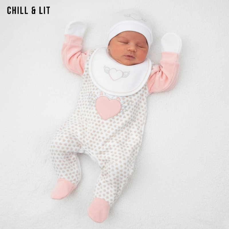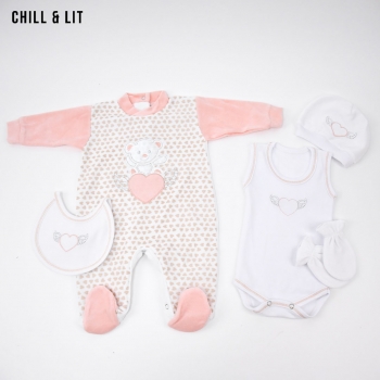 Kit Naissance Sortie Clinique 5 Pieces Body + Grenouillère + Bavoir + Mouffle + Bonnet 100% Coton.