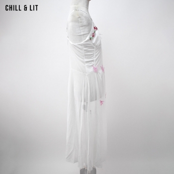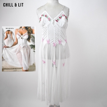 Sublime nuisette élégante, ornée de dentelle florale délicate et de volants raffinés au niveau du décolleté. Bretelles fines ajustables pour un maintien parfait et une touche sensuelle. Légère et fluide, elle met en valeur la silhouette avec élégance et séduction.