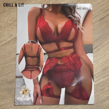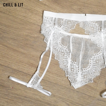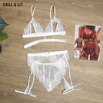 Ensemble Lingerie 3 pièces en Dentelle, Composé d’un Soutien-gorge, D’une Culotte et d’un Porte-jarretelles. Un look séduisant et raffiné pour sublimer la silhouette.