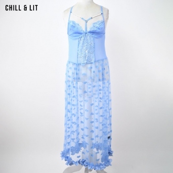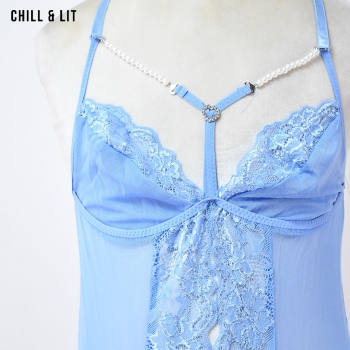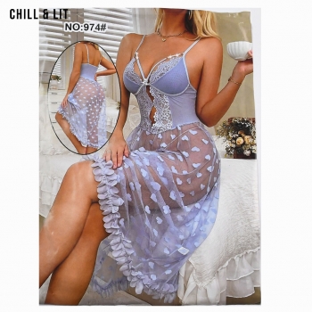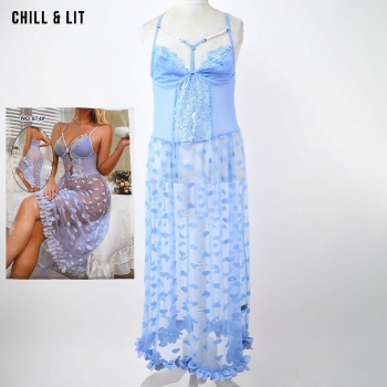 Nuisette en dentelle et tulle transparent à motifs de cœurs, ornée de fines bretelles et de détails romantiques. Douce, élégante et parfaite pour des soirées pleines de charme.