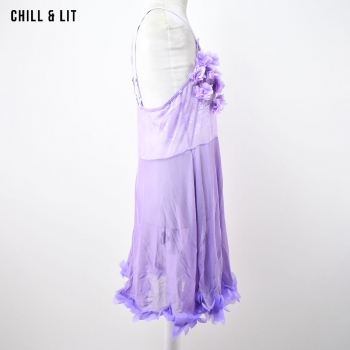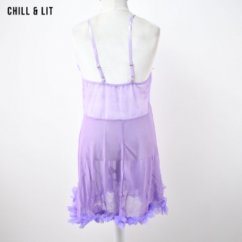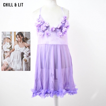 Nuisette blanche élégante en dentelle et tulle, ornée de fleurs en relief sur le buste et à l’ourlet. Bretelles fines et coupe fluide pour un look doux et romantique.