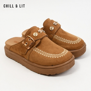 Mules à Plateforme Femme Avec Brides Boucles Inoxydables Réglables Hyper Confortable Semelle de propreté en daim et Super Tendances. Pointure sur la Photo: 37. Hauteur de la Semelle: 5cm