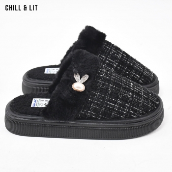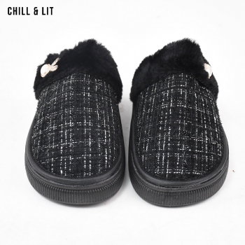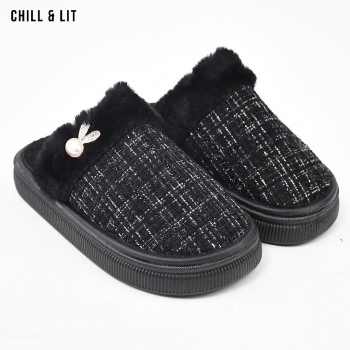 Pantoufles Femme avec Accessoire en Acier Inoxydable Hauteur 3cm avec Doublure Fausse Fourrure Super Chaude et Doux . Pointure sur la Photo:37.