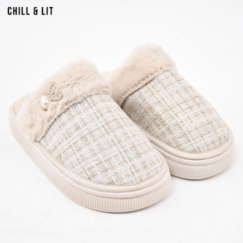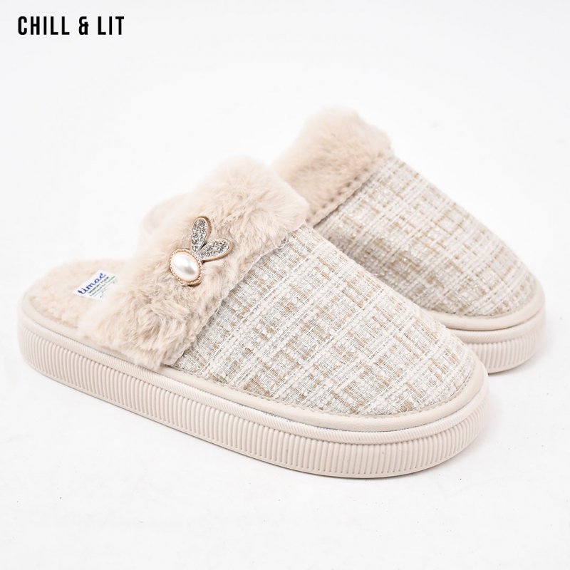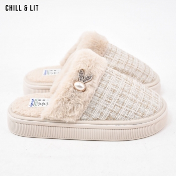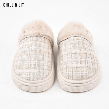 Pantoufles Femme avec Accessoire en Acier Inoxydable Hauteur 3cm avec Doublure Fausse Fourrure Super Chaude et Doux . Pointure sur la Photo:37.