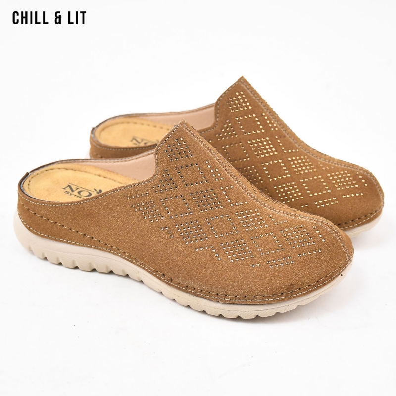 Mules Sabots Femme Confortables en Daim Décorées de Strass. Semelle Souple et Antidérapante avec Hauteur 4cm , Parfaites pour Un Look Chic et Décontracté. Pointure sur la Photo:37