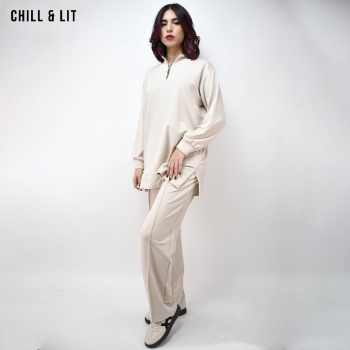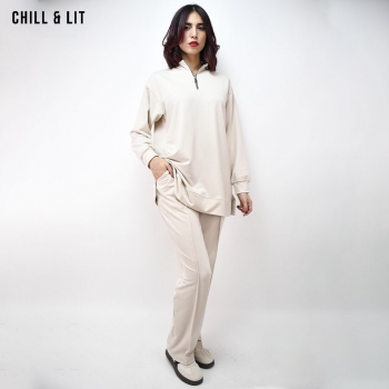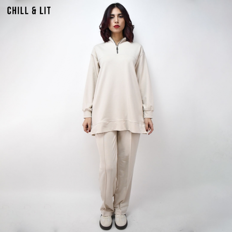 Ensemble Survêtement Femme Pull col montant Avec Fermeture Glissière. Pantalon Coupe Large Ajustable à La Taille. Super Tendance . Le Mannequin Porte La Taille M et Mesure 1m78.