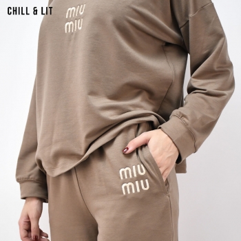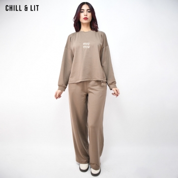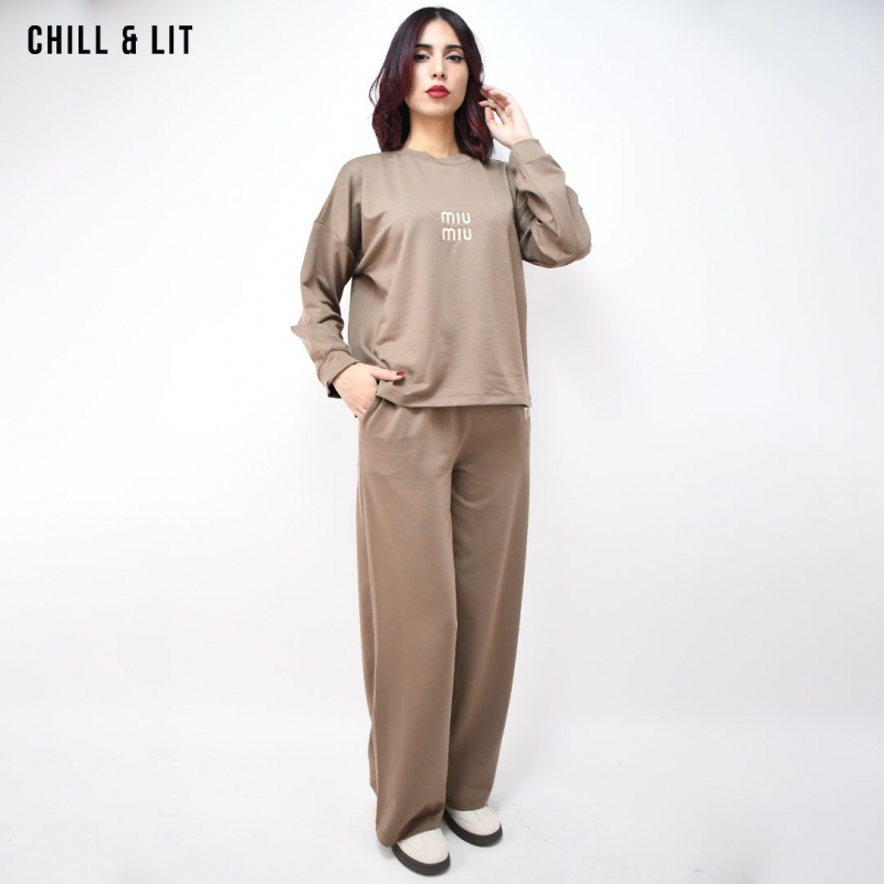 Ensemble Survêtement Femme Pull Avec Logo en Broderie. Pantalon Coupe Large Avec Logo en Broderie Ajustable à La Taille. Super Tendance . Le Mannequin Porte La Taille M et Mesure 1m78.