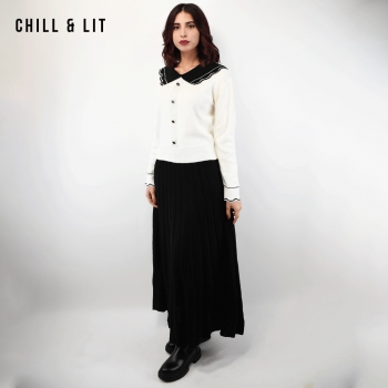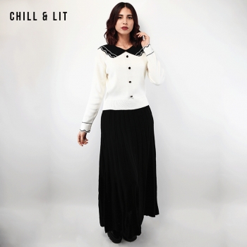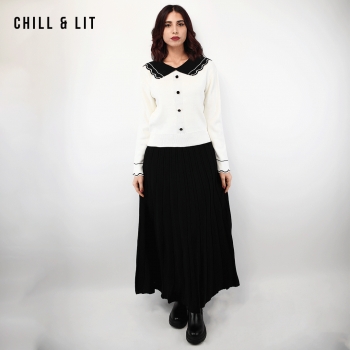 Ensemble en Laine pour Femme. Pull Avec Boutons Inoxydables, Col Chemise, Manches Longues + Jupe Large Coupe Ample . Super Tendance cet Hiver. Le Mannequin Porte La Taille Standard et Mesure 1m78.