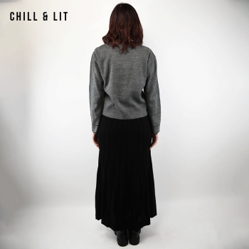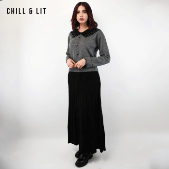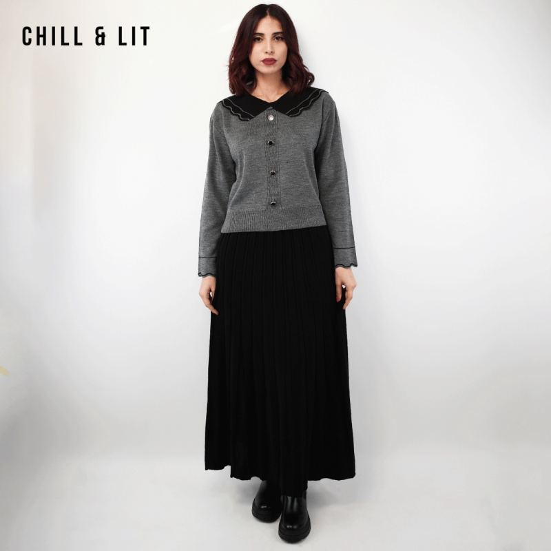 Ensemble en Laine pour Femme. Pull Avec Boutons Inoxydables, Col Chemise, Manches Longues + Jupe Large Coupe Ample . Super Tendance cet Hiver. Le Mannequin Porte La Taille Standard et Mesure 1m78.