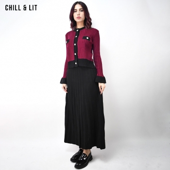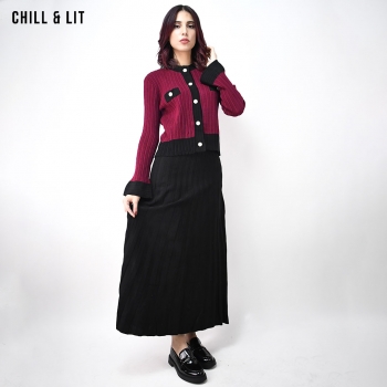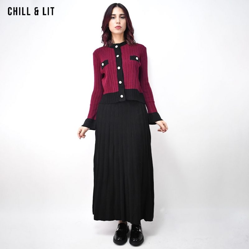 Ensemble en Laine pour Femme. Gilet Avec Fermeture en Boutons Inoxydables, Manches Longues + Jupe Large Coupe Ample . Super Tendance cet Hiver. Le Mannequin Porte La Taille Standard et Mesure 1m78.