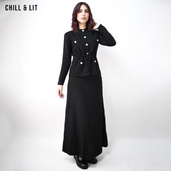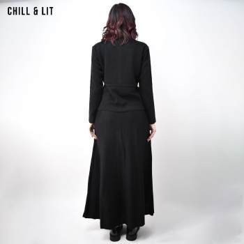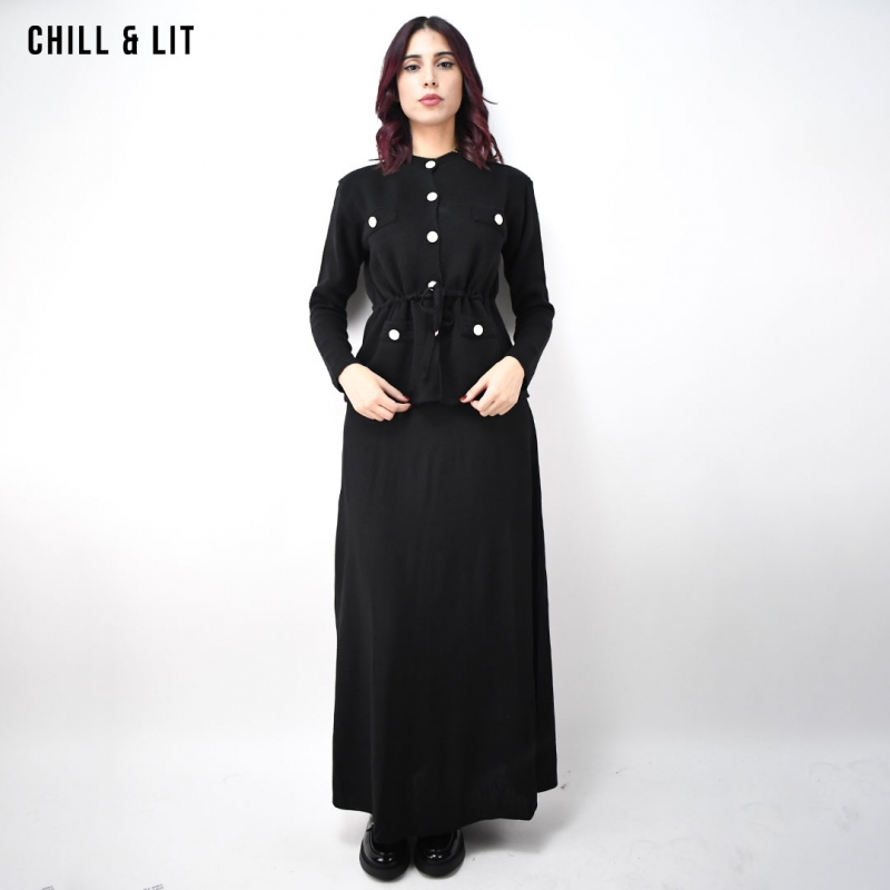 Ensemble en Laine pour Femme. Gilet Avec Fermeture en Boutons Inoxydables, Manches Longues + Jupe Large Coupe Ample . Super Tendance cet Hiver. Le Mannequin Porte La Taille Standard et Mesure 1m78.