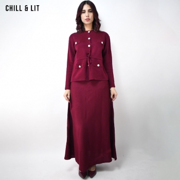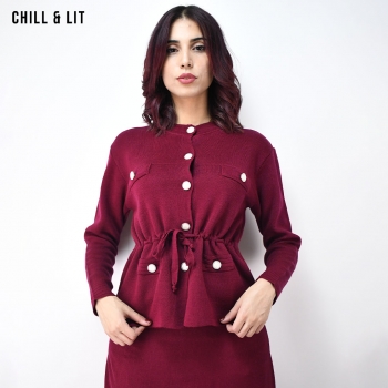 Ensemble en Laine pour Femme. Gilet Avec Fermeture en Boutons Inoxydables, Manches Longues + Jupe Large Coupe Ample . Super Tendance cet Hiver. Le Mannequin Porte La Taille Standard et Mesure 1m78.