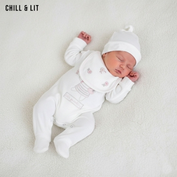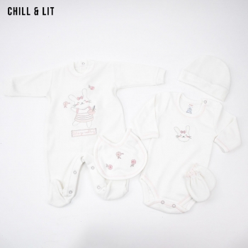 Kit Naissance Sortie Clinique 5 Pieces Body + Grenouillère + Bavoir + Mouffle + Bonnet 100% Coton.