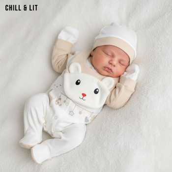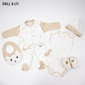 Kit Naissance Sortie Clinique 6 Pieces Body + Grenouillère + Bavoir + chaussons + Moufle + Bonnet 100% Coton.