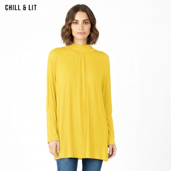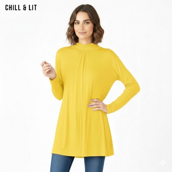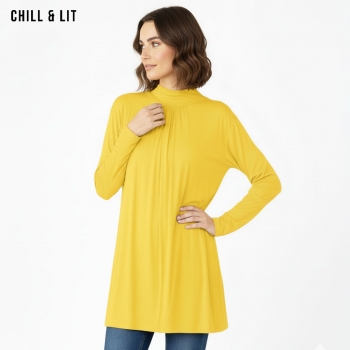 Pull Long pour Femme Avec Manches Longues, Col Roulé. Hyper Tendance en ce Moment. Le Mannequin Porte La Taille Standard.