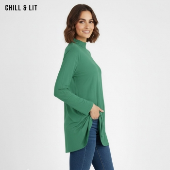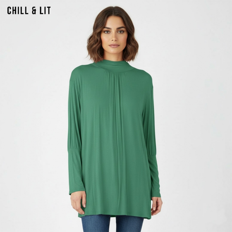 Pull Long pour Femme Avec Manches Longues, Col Roulé. Hyper Tendance en ce Moment. Le Mannequin Porte La Taille Standard.
