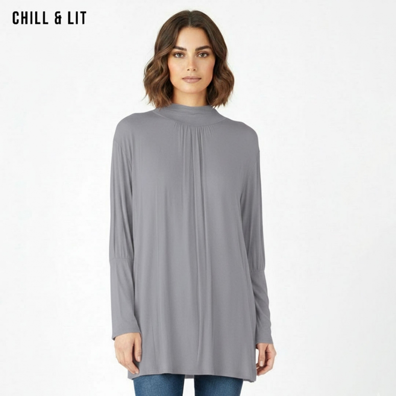 Pull Long pour Femme Avec Manches Longues, Col Roulé. Hyper Tendance en ce Moment. Le Mannequin Porte La Taille Standard.