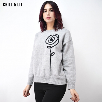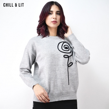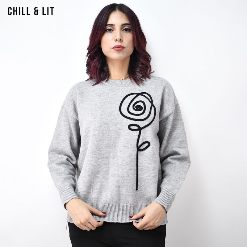 Pull Court à Broderie Bouffante Femme en Laine avec Broderie , Col Rond, Manches Longues Hyper Tendance en ce Moment. Le Mannequin Porte La Taille S/M.