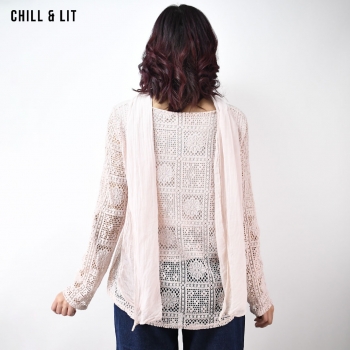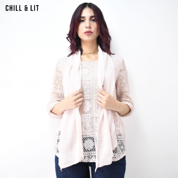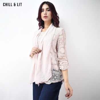 Pull en Dentelle avec Foulard assorti Élégante et Légère. Son foulard assorti ajoute une touche de sophistication parfaite pour toutes les occasions. Le Mannequin Porte La Taille Standard.