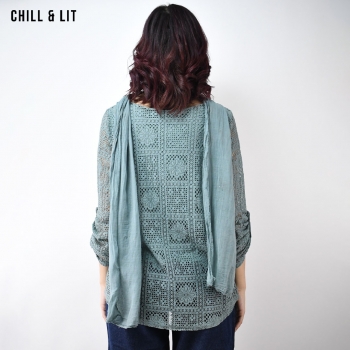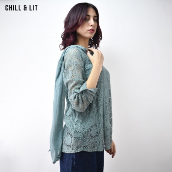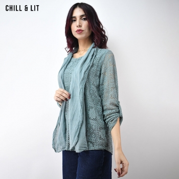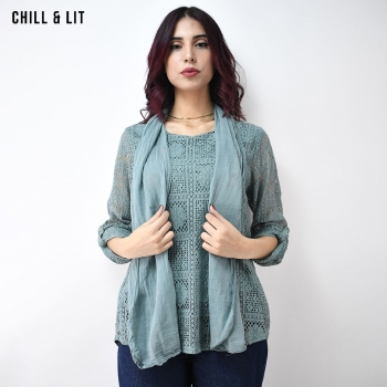 Pull en Dentelle avec Foulard assorti Élégante et Légère. Son foulard assorti ajoute une touche de sophistication parfaite pour toutes les occasions. Le Mannequin Porte La Taille Standard.