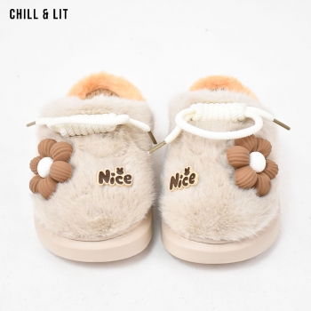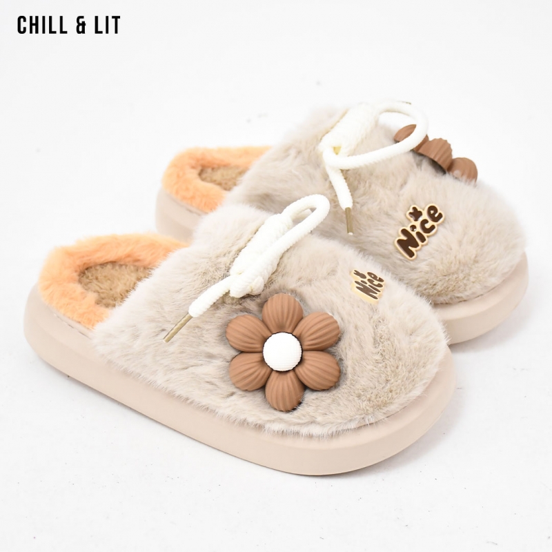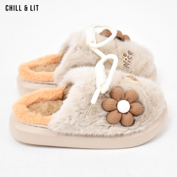 Pantoufles pour Femme, Douces et Chaudes, avec décoration Fleur , ornées de Fourrure pour un Confort absolu à la maison.
