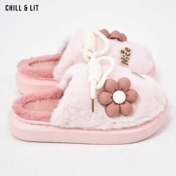 Pantoufles pour Femme, Douces et Chaudes, avec décoration Fleur , ornées de Fourrure pour un Confort absolu à la maison.