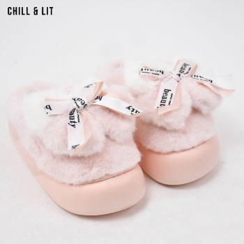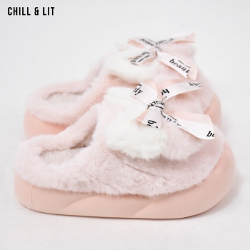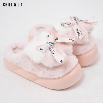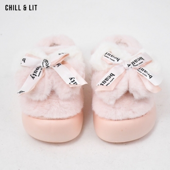 Pantoufles Plates pour Femme, Douces et Chaudes, avec décoration papillon ,ornées de Fourrure pour un Confort absolu à la maison.