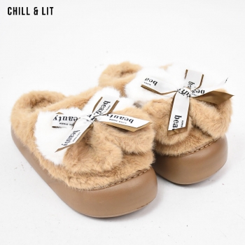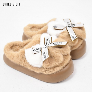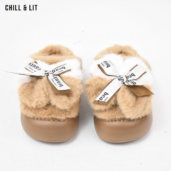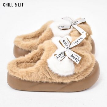 Pantoufles Plates pour Femme, Douces et Chaudes, avec décoration papillon ,ornées de Fourrure pour un Confort absolu à la maison.