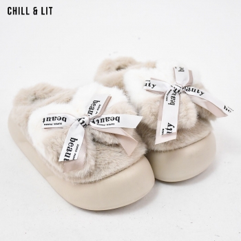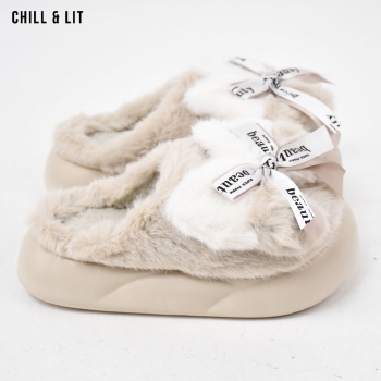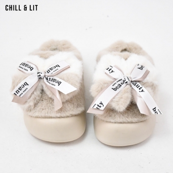 Pantoufles Plates pour Femme, Douces et Chaudes, avec décoration papillon ,ornées de Fourrure pour un Confort absolu à la maison.
