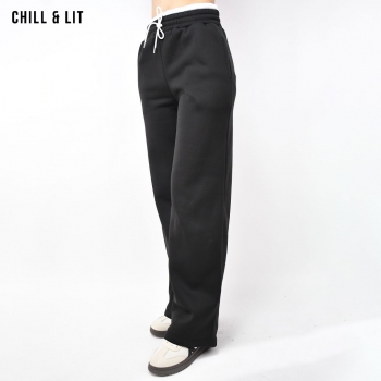 Pantalon Jogging Large Taille Haute Ajustable à La Taille avec Cordant Super Tendances cette Saison. Le Mannequin Porte La Taille S et Mesure 1m75.