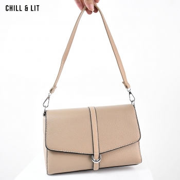 Sac à Main en Cuir Avec Fermeture Glissière, se porte sur les épaules par Bandoulière en Cuir Avec Double Fermeture, Bouton Pression et Glissière Hyper Tendance . Dimensions 15.5x25.5cm