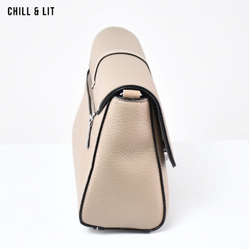Sac à Main en Cuir Avec Fermeture Glissière, se porte sur les épaules par Bandoulière en Cuir Avec Double Fermeture, Bouton Pression et Glissière Hyper Tendance . Dimensions 15.5x25.5cm