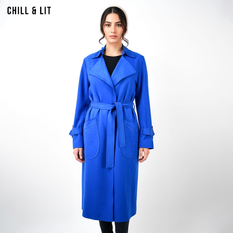 Trench en Daim Mi-long avec Poches Hyper Tendance en ce Moment. Le Mannequin Porte La Taille 40.