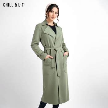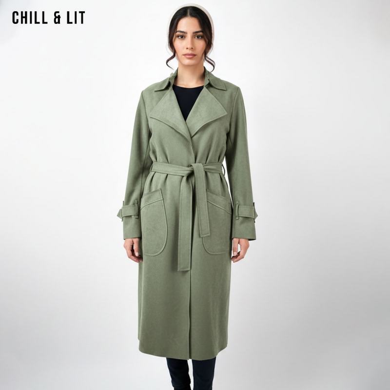 Trench en Daim Mi-long avec Poches Hyper Tendance en ce Moment. Le Mannequin Porte La Taille 40.