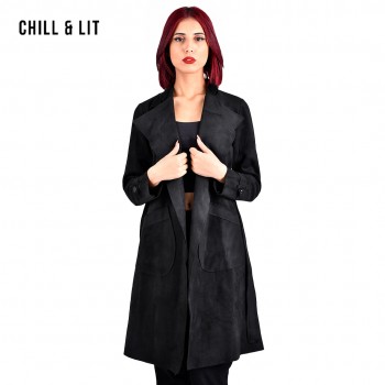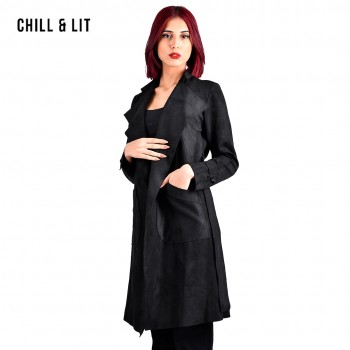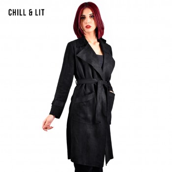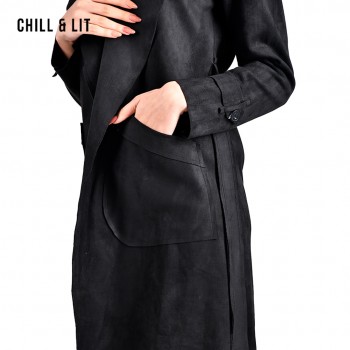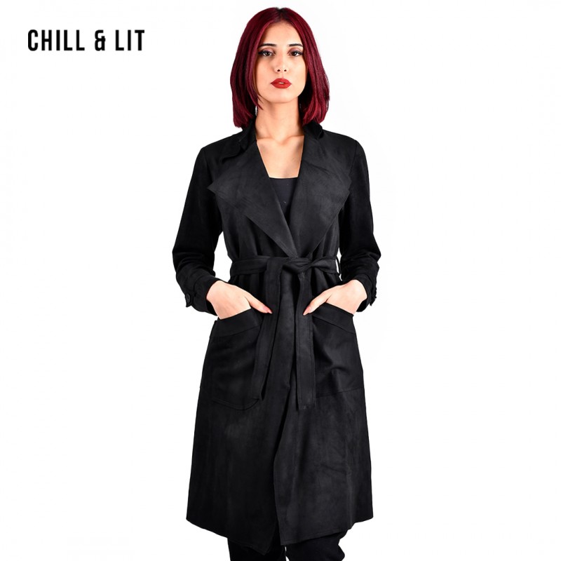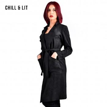 Trench en Daim Mi-long avec Poches Hyper Tendance en ce Moment. Le Mannequin Porte La Taille 40.