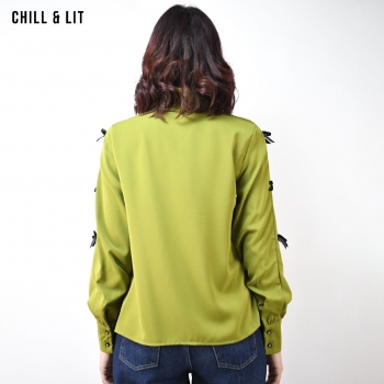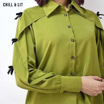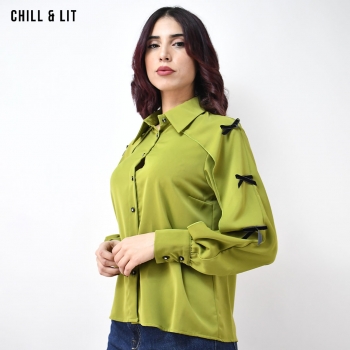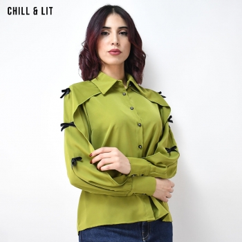 Chemise élégante avec Manches Longues ornée de Papillons . Mannequin Porte La Taille 40.