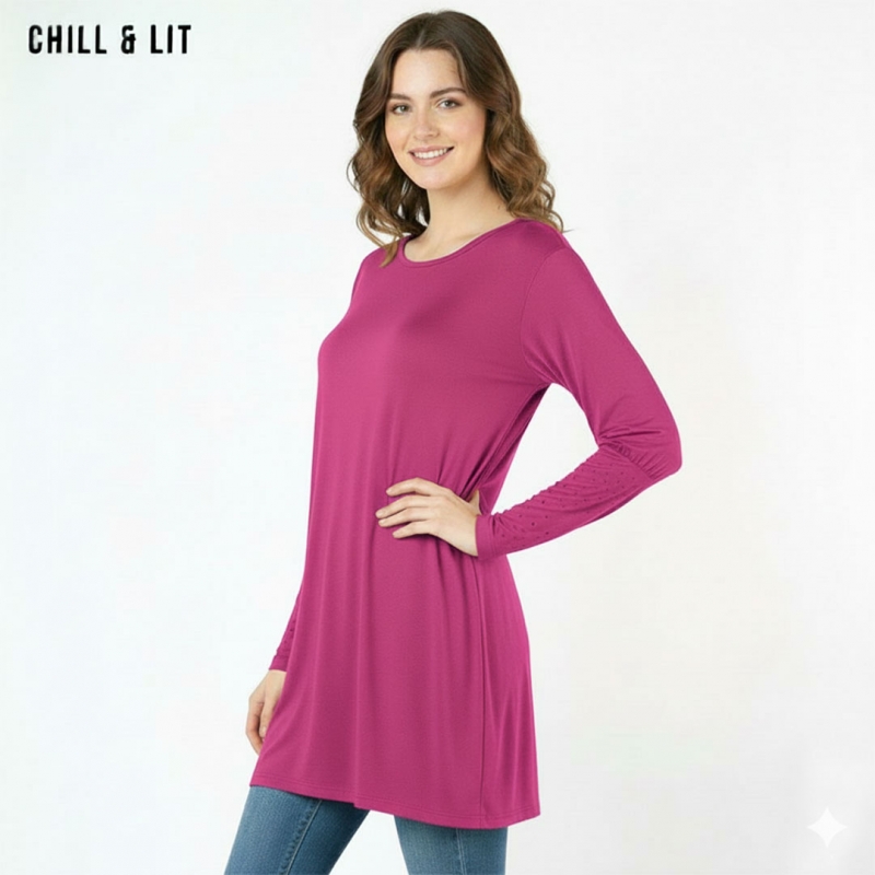 Pull long pour femme avec manches longues en strass, col rond. Hyper tendance en ce moment.