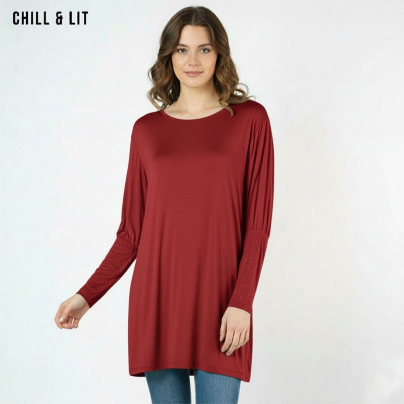 Pull long pour femme avec manches longues en strass, col rond. Hyper tendance en ce moment.