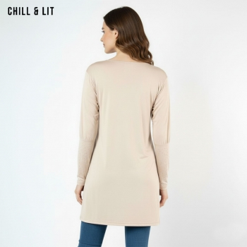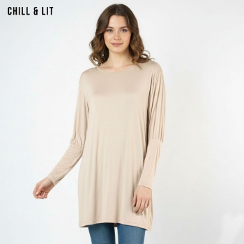 Pull long pour femme avec manches longues en strass, col rond. Hyper tendance en ce moment.