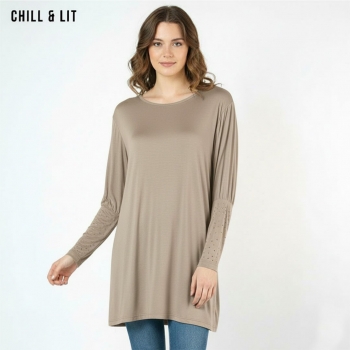 Pull long pour femme avec manches longues en strass, col rond. Hyper tendance en ce moment.