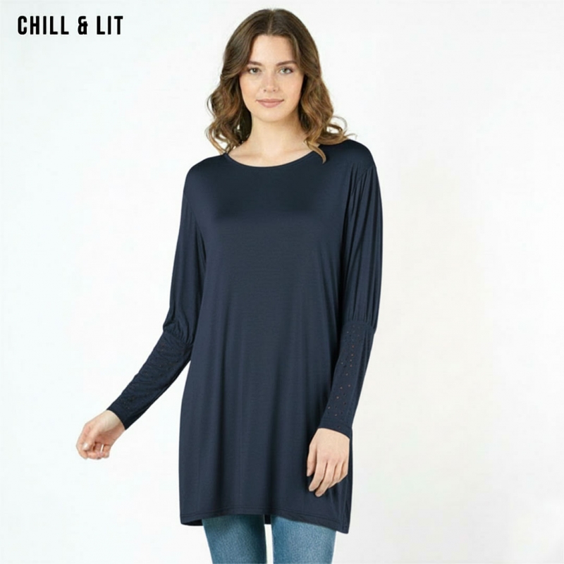 Pull long pour femme avec manches longues en strass, col rond. Hyper tendance en ce moment.