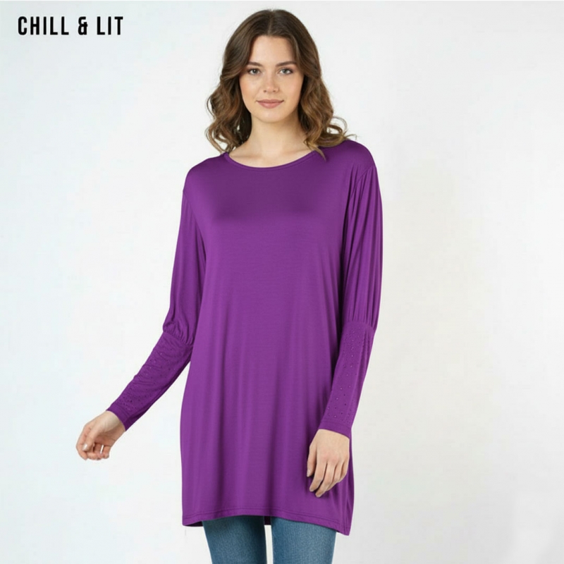 Pull long pour femme avec manches longues en strass, col rond. Hyper tendance en ce moment.