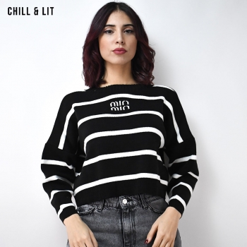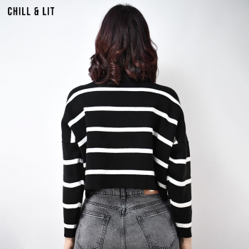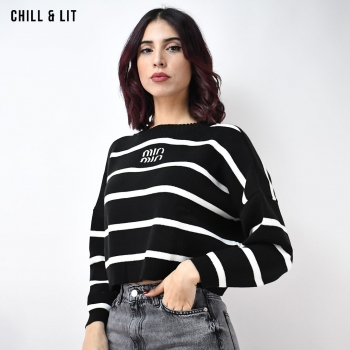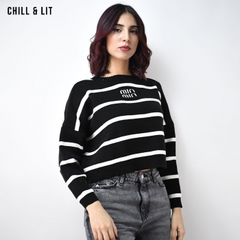 Pull Court Rayé en Laine pour Femme, à Manches Longues et Col Rond. Hyper Tendance .