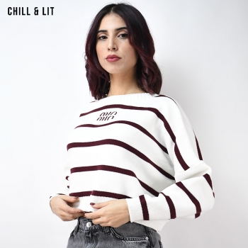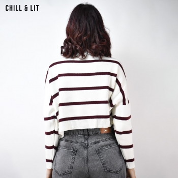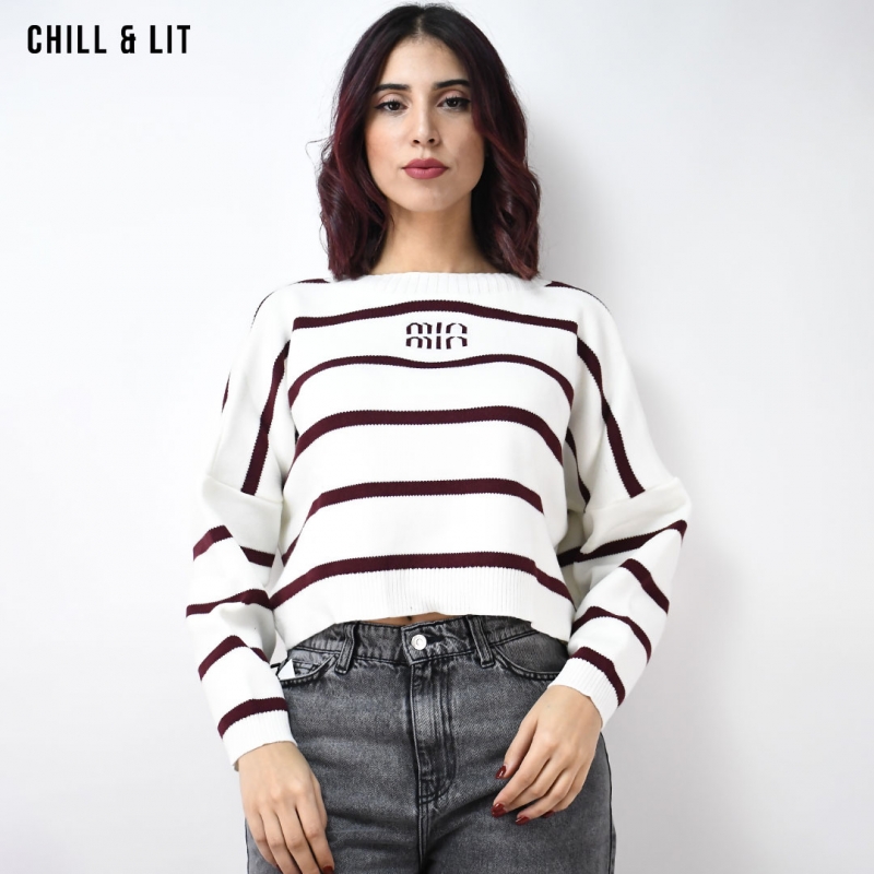 Pull Court Rayé en Laine pour Femme, à Manches Longues et Col Rond. Hyper Tendance .