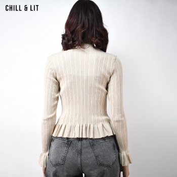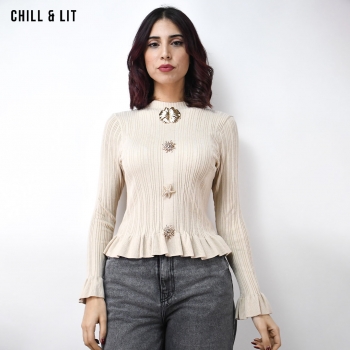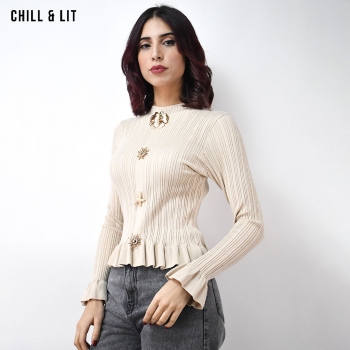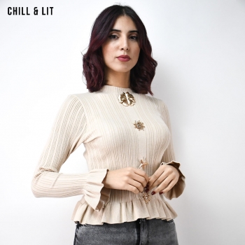 Pull Court Rayé en Laine pour Femme, à Manches Longues et Col Rond. Hyper Tendance .